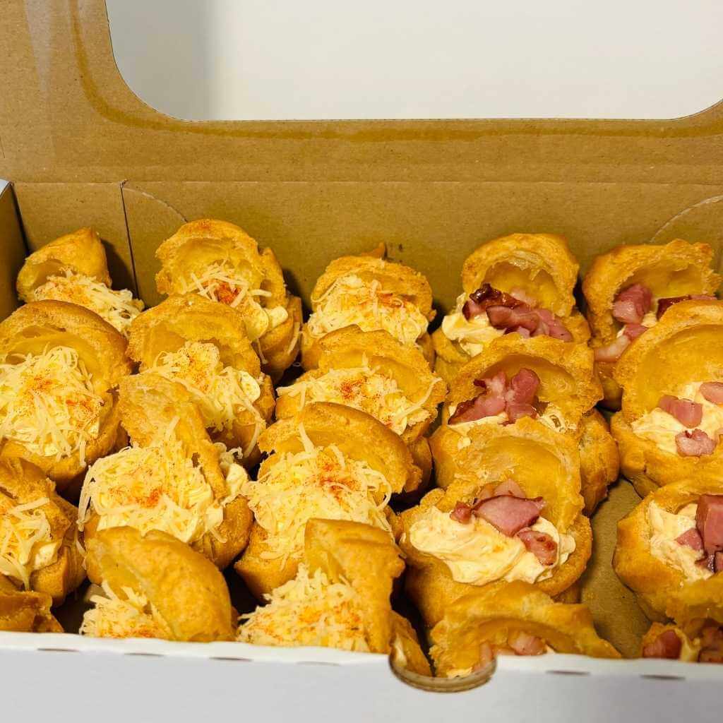 Sajtkrémmel és reszelt sajttal vagy bacon-nel töltve.
